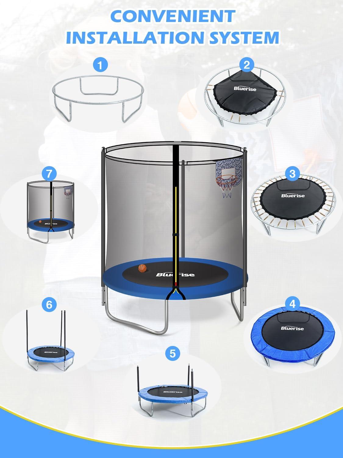 【ASTM Standard Safety Specification】BLUERISE provides children with a safe trampoline experience, with lab-tested. Safety is paramount.