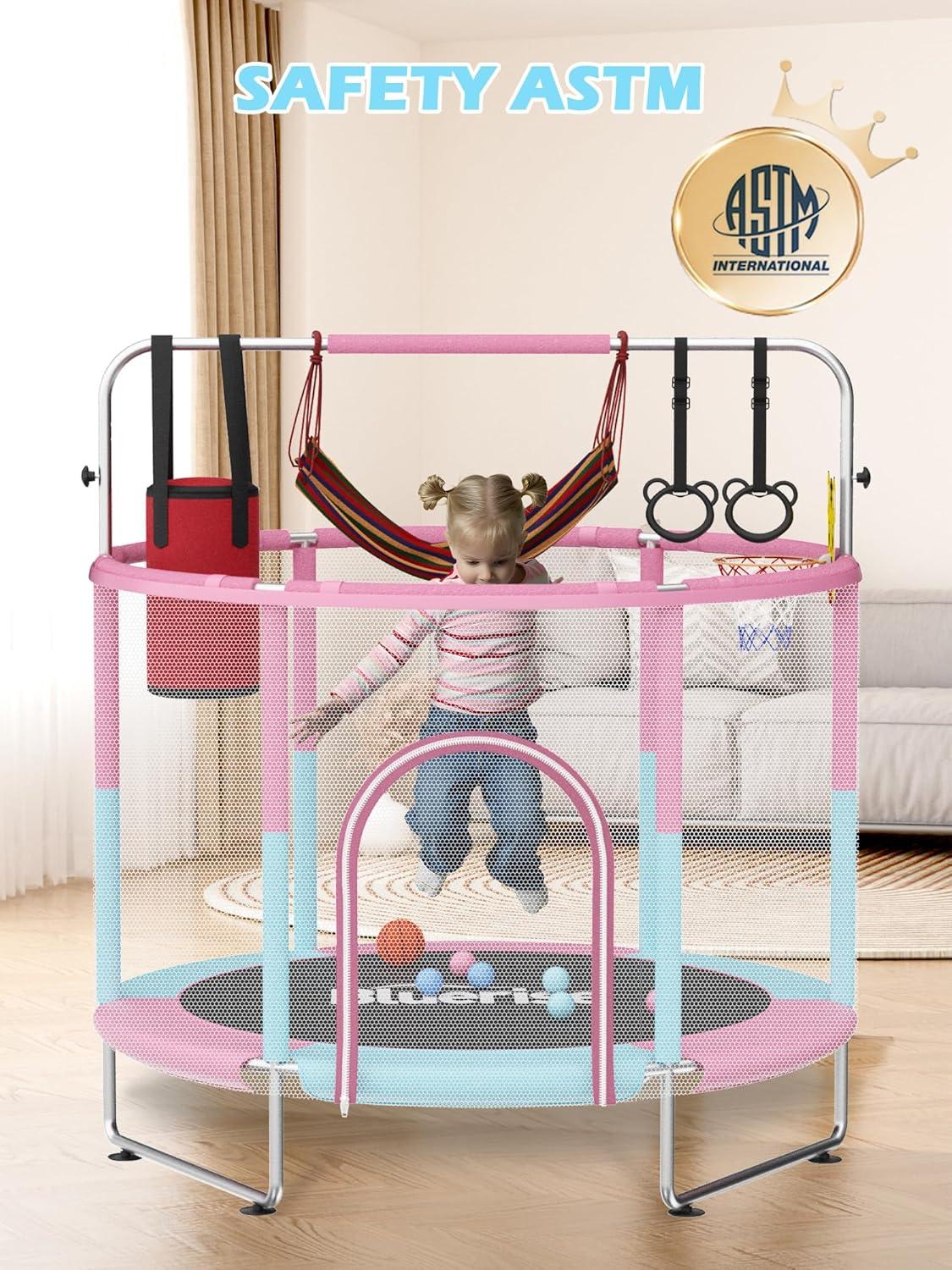 【ASTM Standard Safety Specification】BLUERISE 5FT toddler trampoline provides children with a safe trampoline experience, with lab-tested. Safety is paramount. This trampoline can be applied to various indoor scenarios.