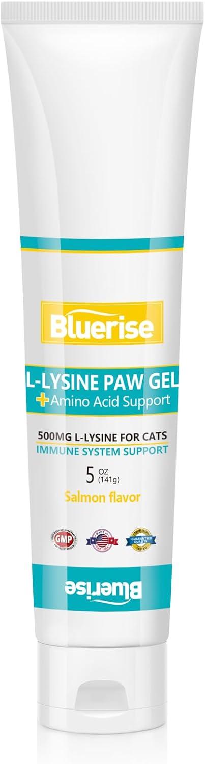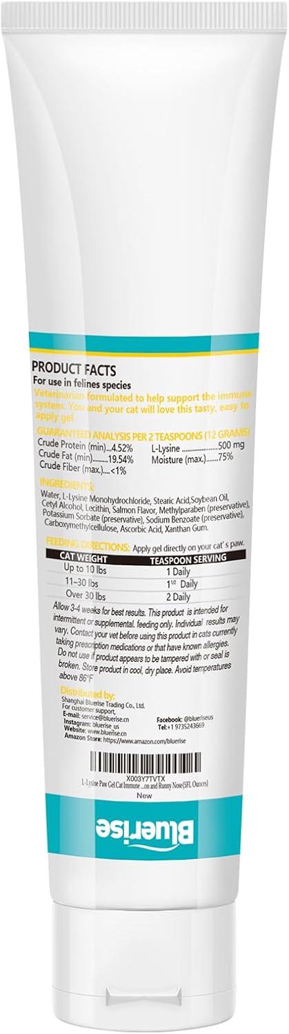 BLUERISE Cat Lysine Supplement Gel, 5oz – Support Feline’s Immune System and Respiratory Health, Increased Eye Discharge, Nasal Branching in Cats, Stomatitis, Skin infections,Sneezing, Runny Nose