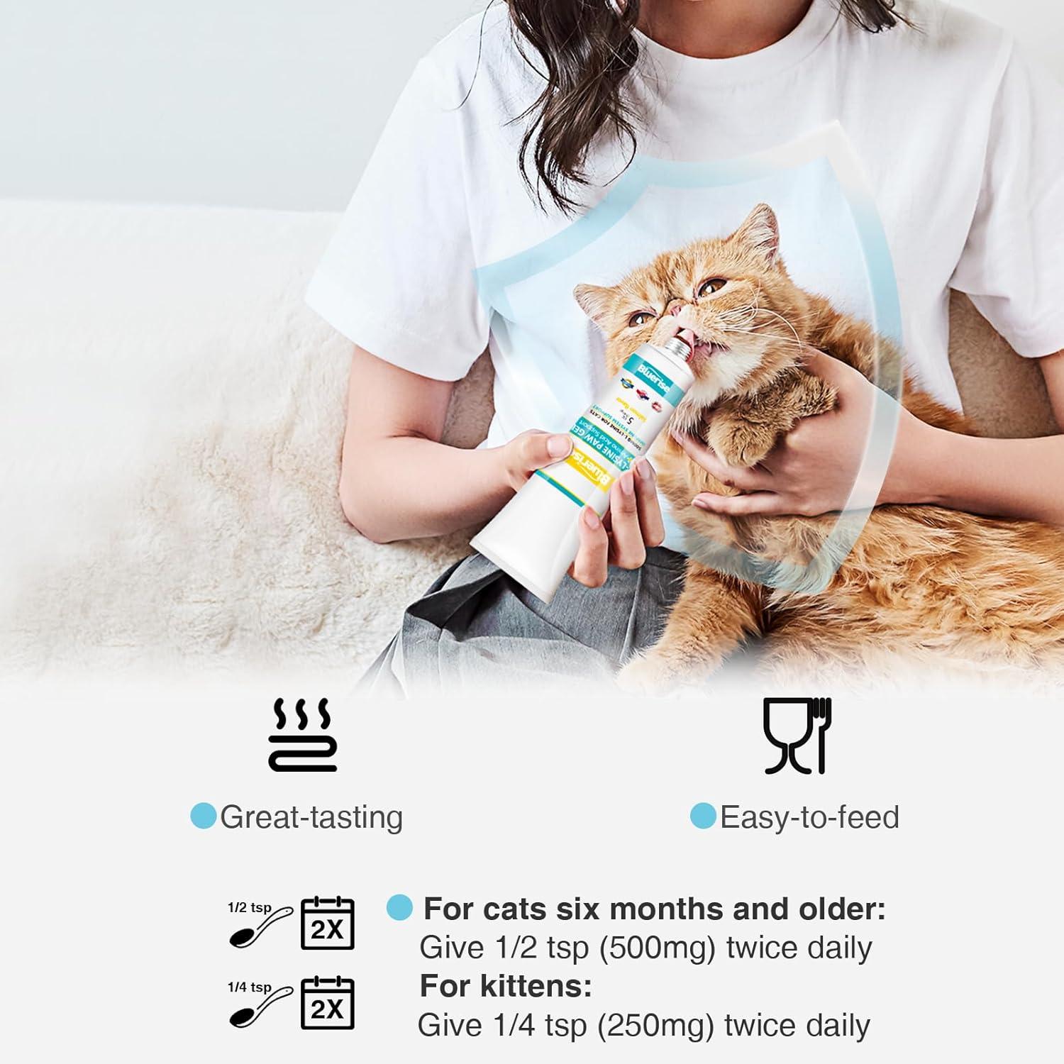 Easy To Feed: Nutritional gels for cats are more convenient. For kittens: Give 250 mg twice daily; For cats six months and older: Give 500 mg twice daily