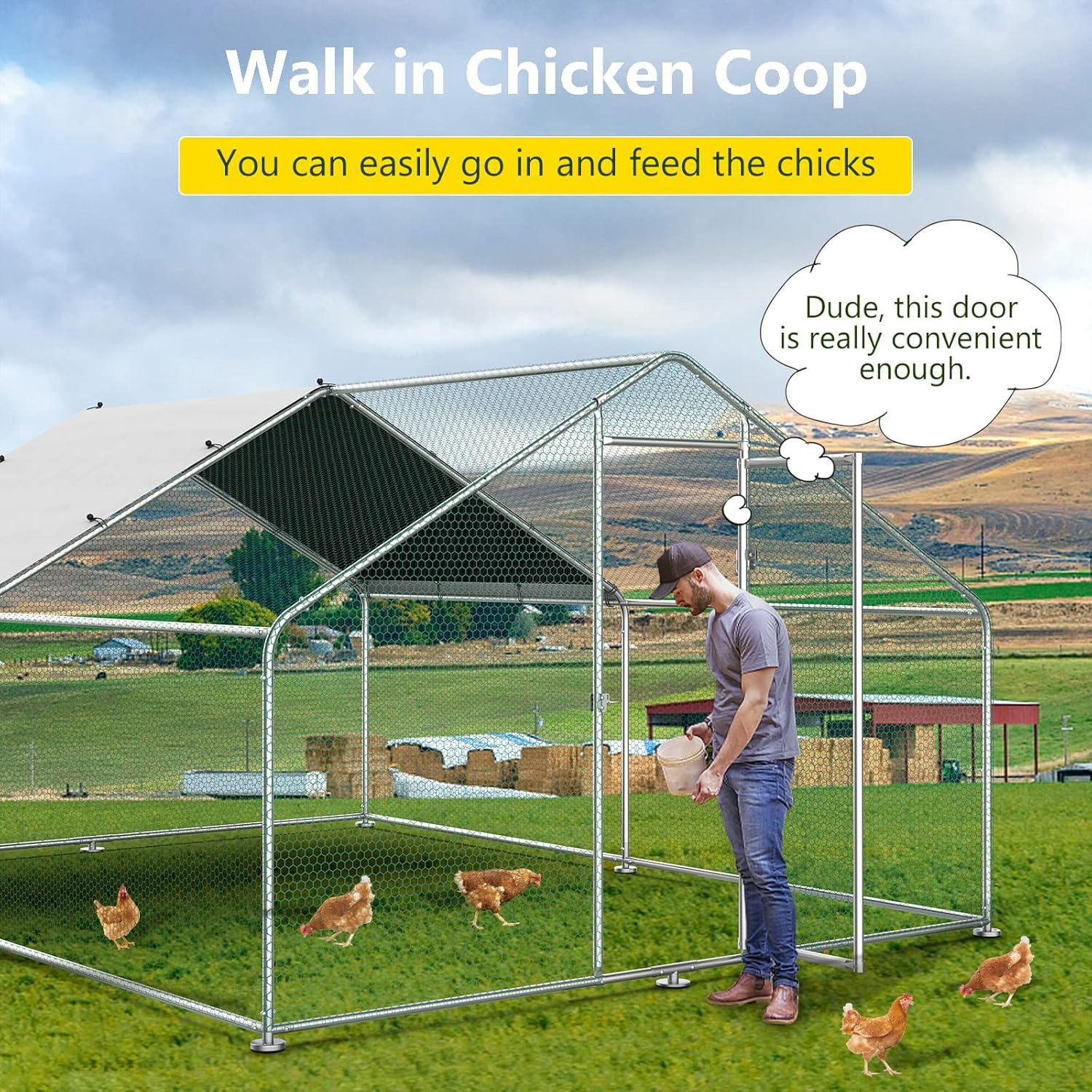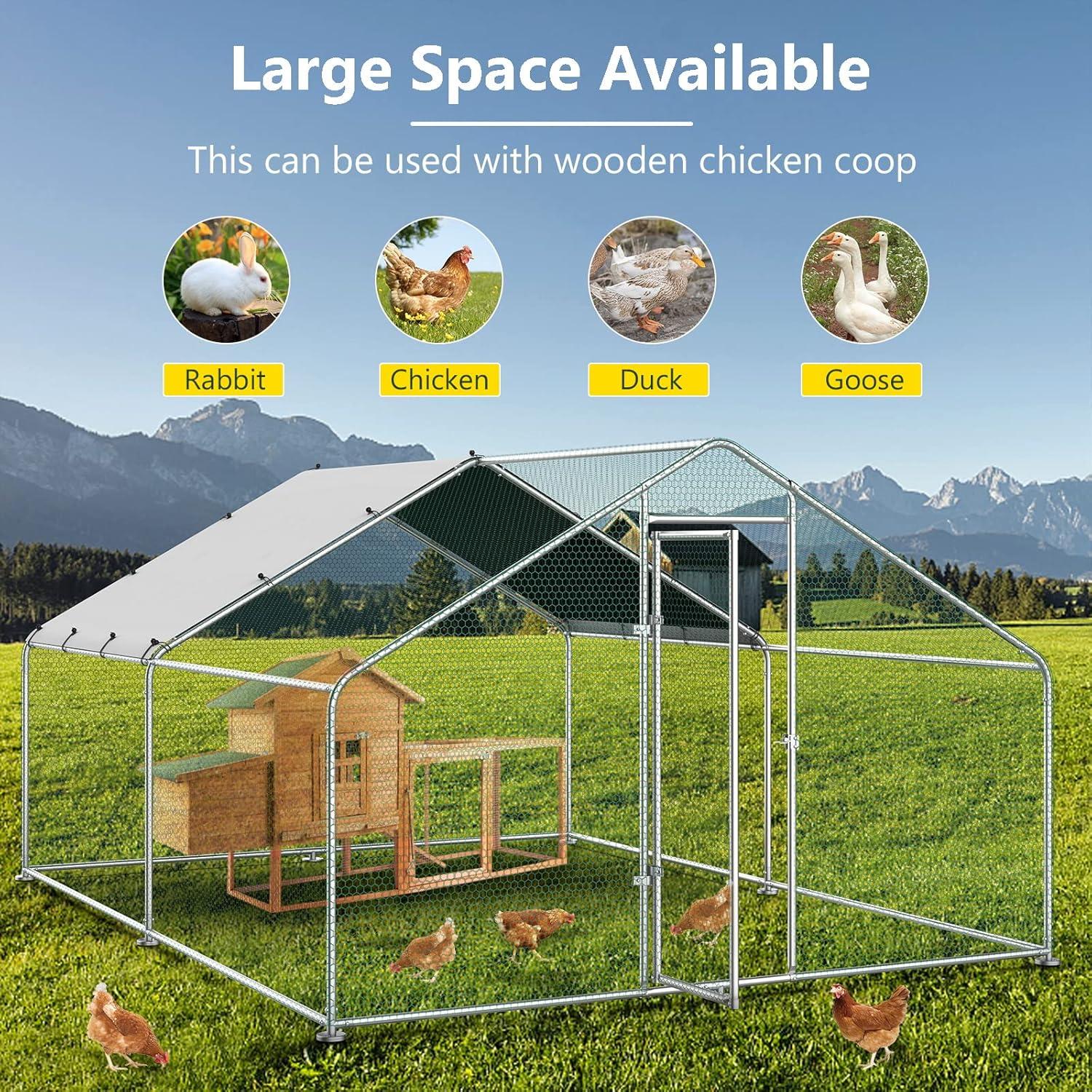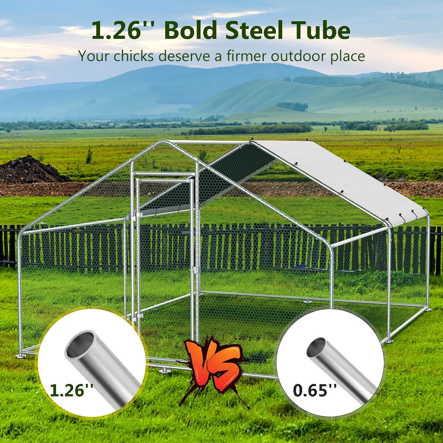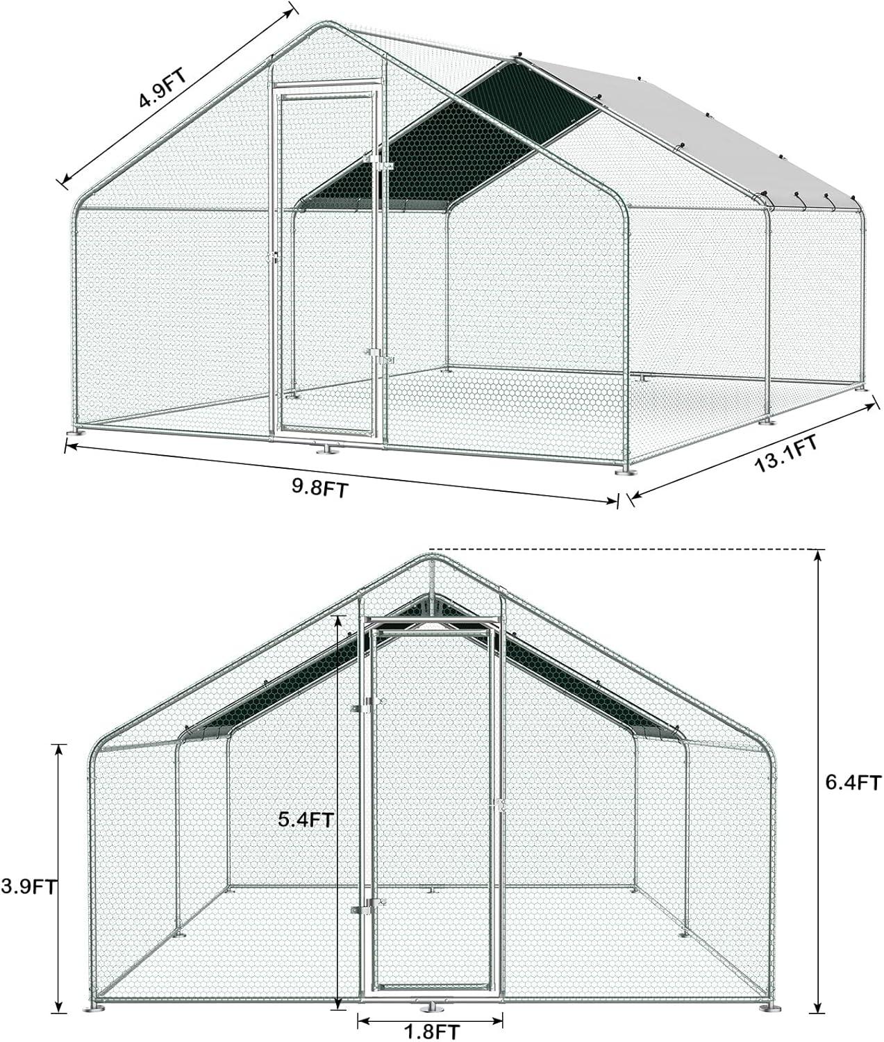 Lyromix 1.26” Large Metal Chicken Coop,Walk-in Poultry Cage Chicken Runs House for Yard with Waterproof Cover,Chicken Pens Habitat Cage for Outdoor Farm(9.8′ Lx13.1′ Wx6.4′ H)