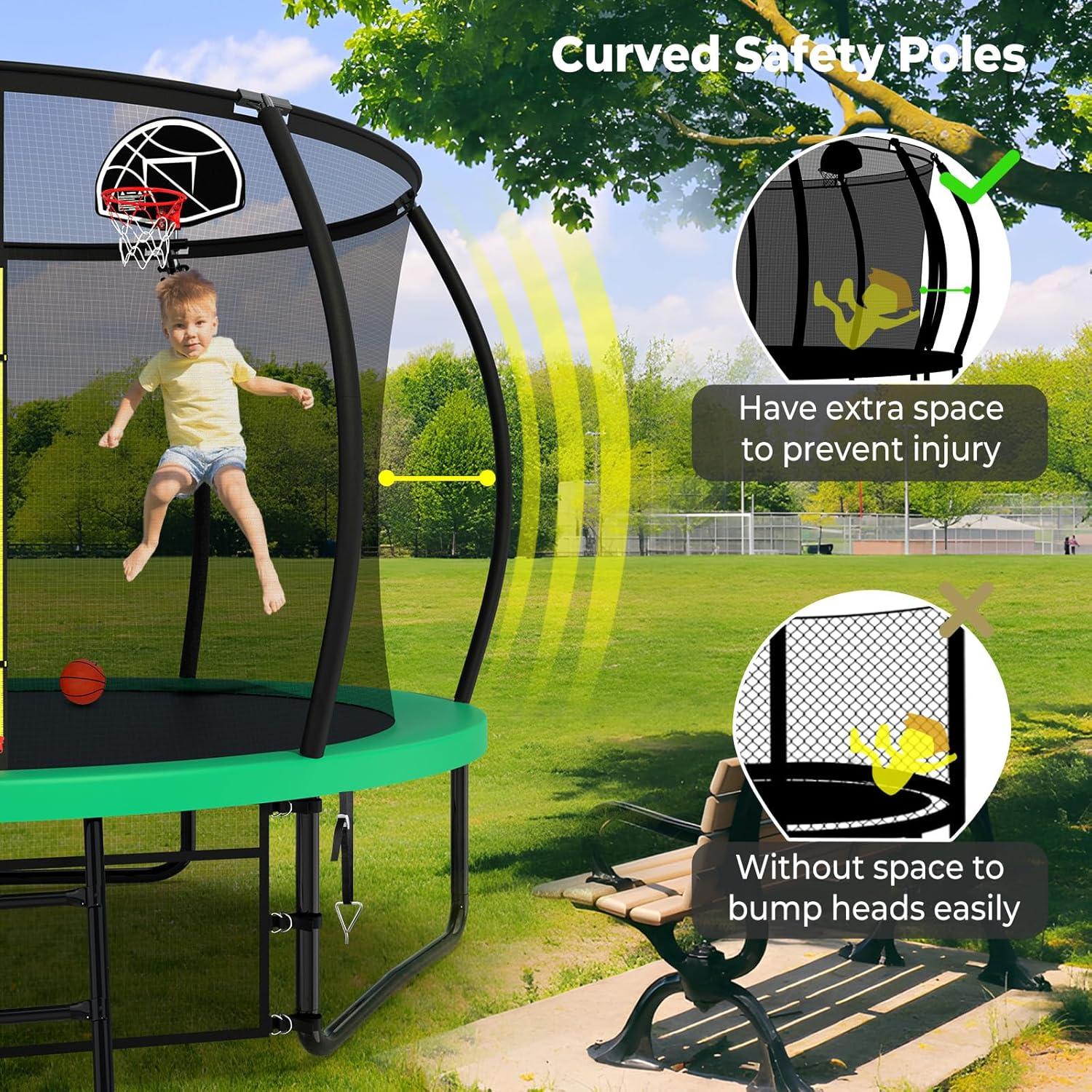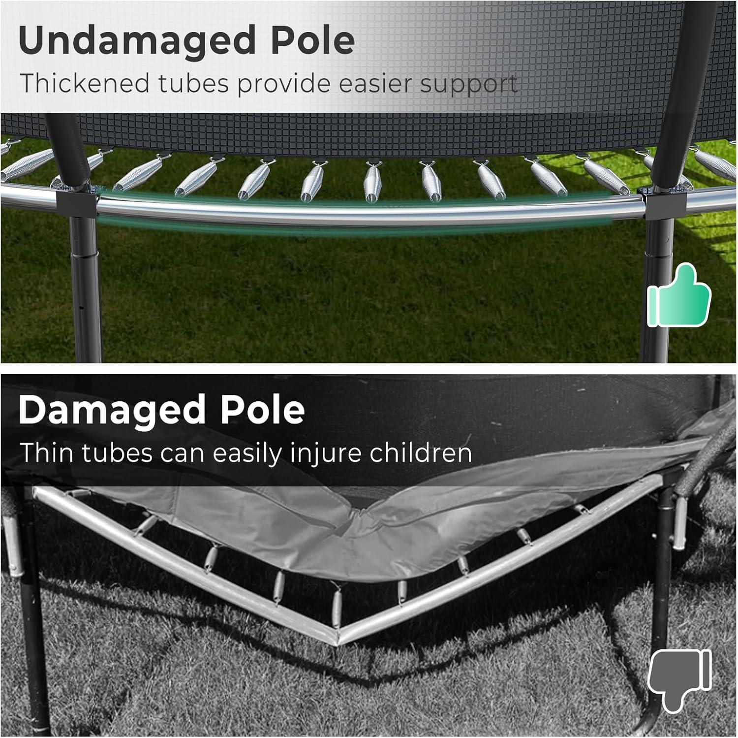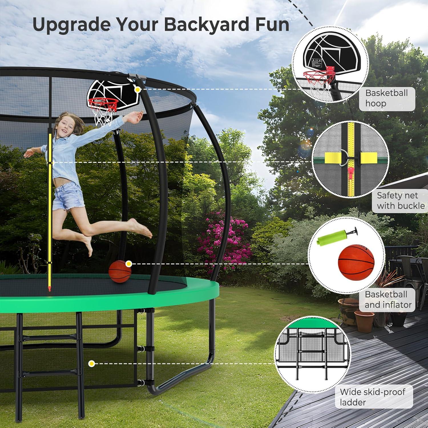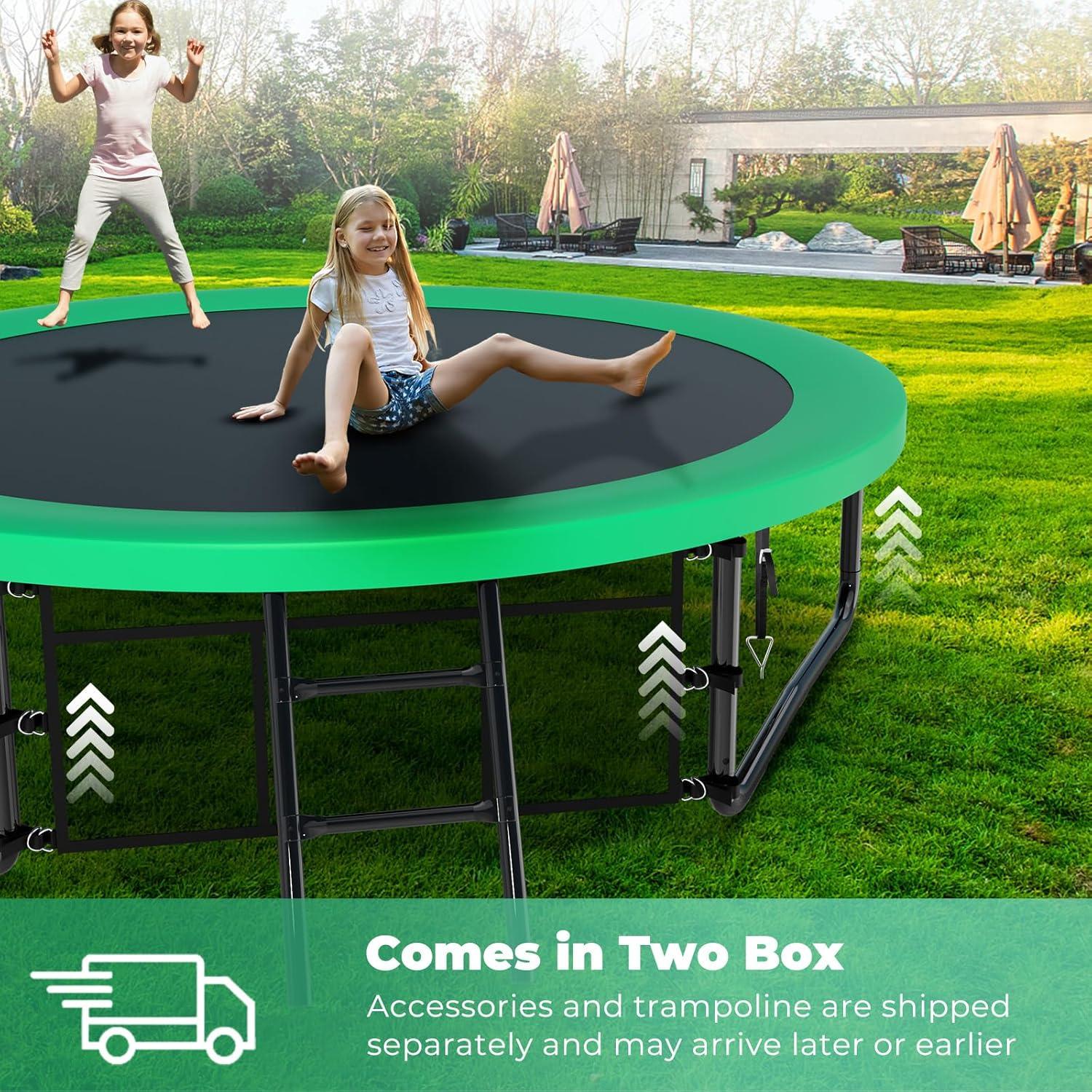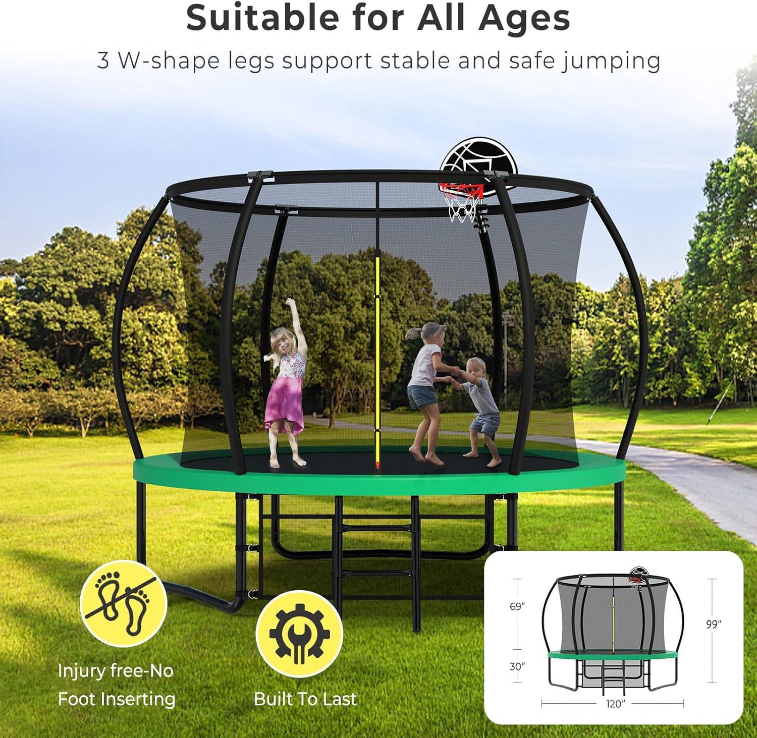 【Exceptional Bounce and Longevity】With industry-leading springs and a premium bounce mat, 10 foot trampoline delivers exceptional jumping performance