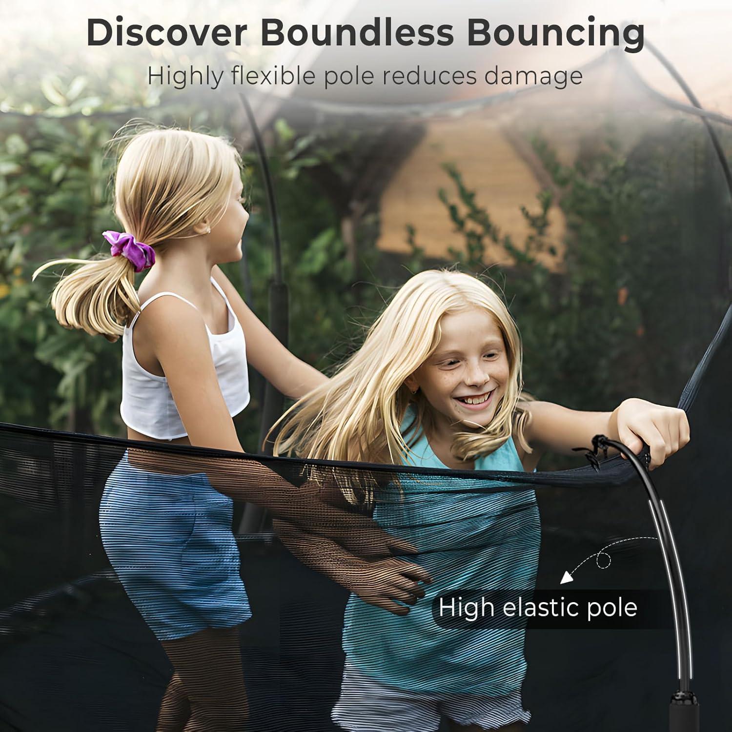 Built for outdoor fun, this trampoline features a curved pole design that improves stability and reduces risk during jumps. ASTM-certified for safety and quality, it provides a secure, high-performance jumping experience for families and can withstand long-term outdoor use.