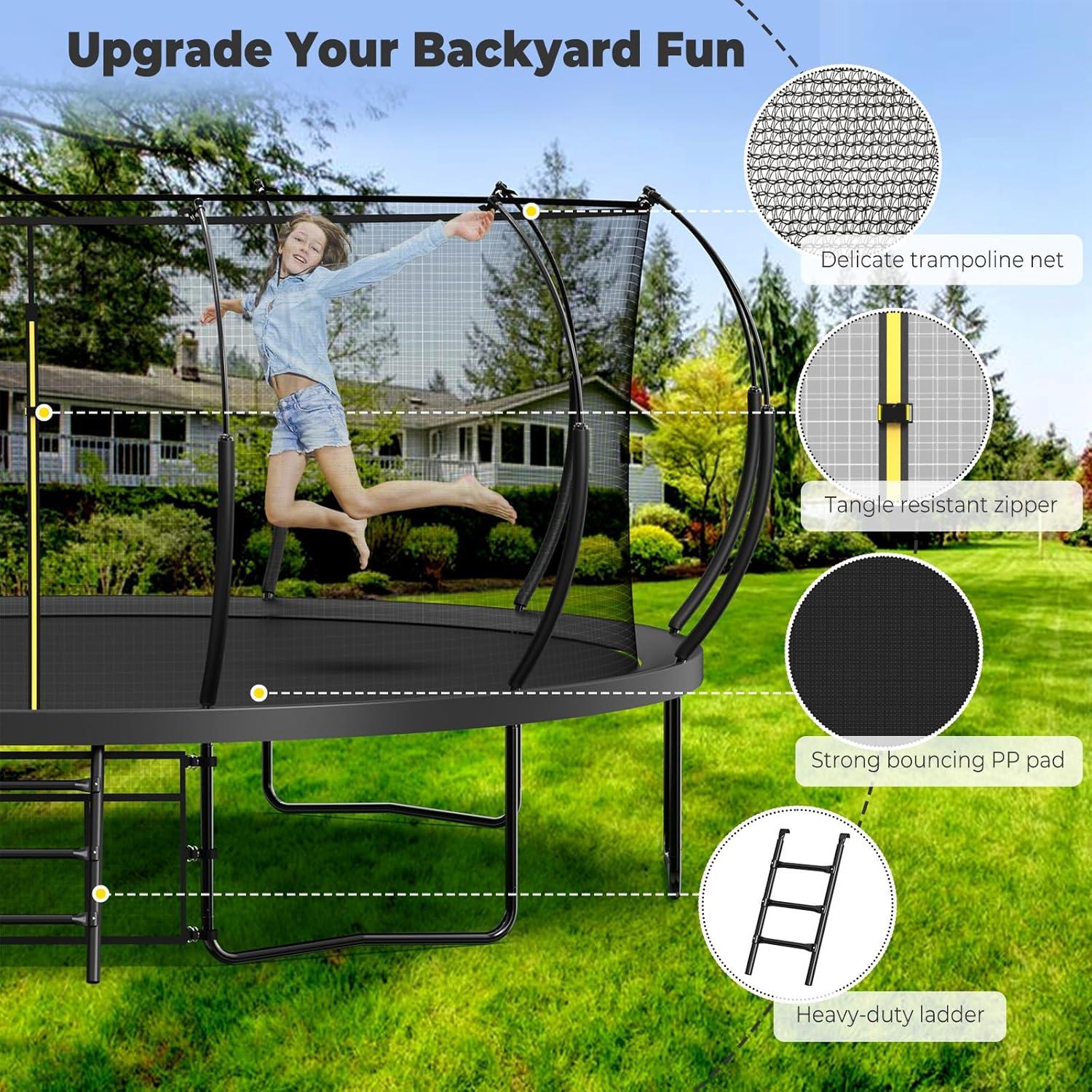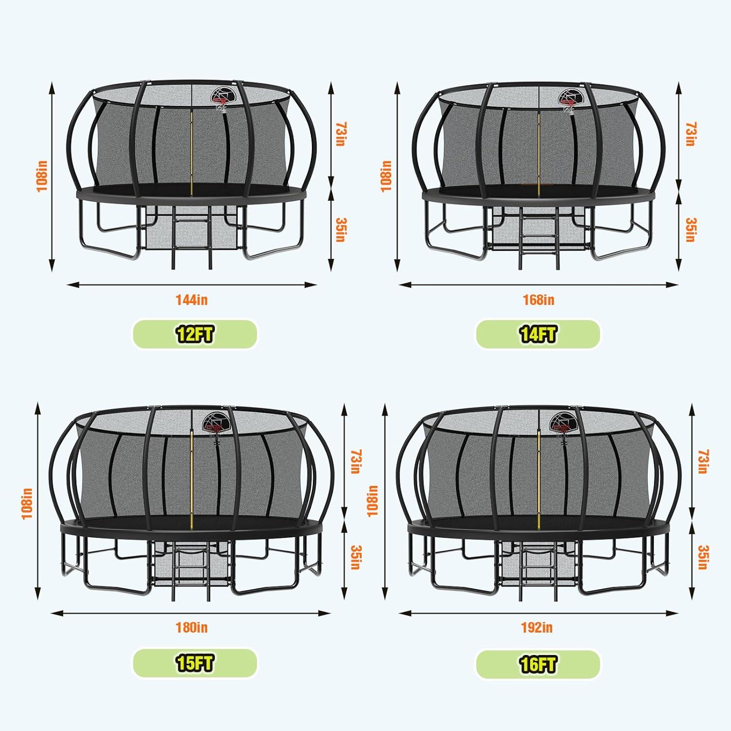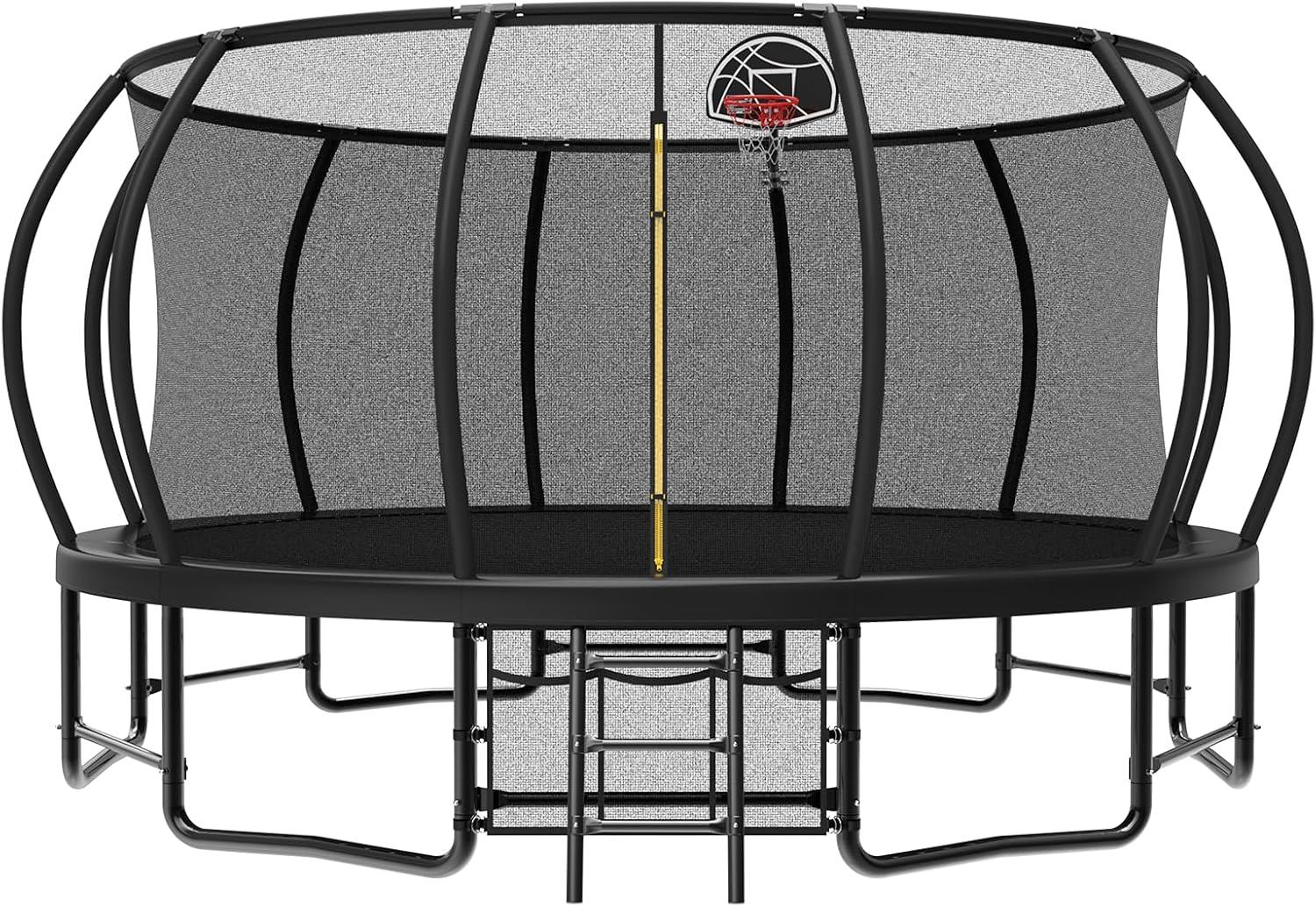 Lyromix 12 14 15 16FT Outdoor Trampolines for Kids and Adults, Pumpkin Trampolin with Curved Poles, Recreational Trampolin with Basketball Hoop and Safety Enclosure Net for Kids and Adults(Black)