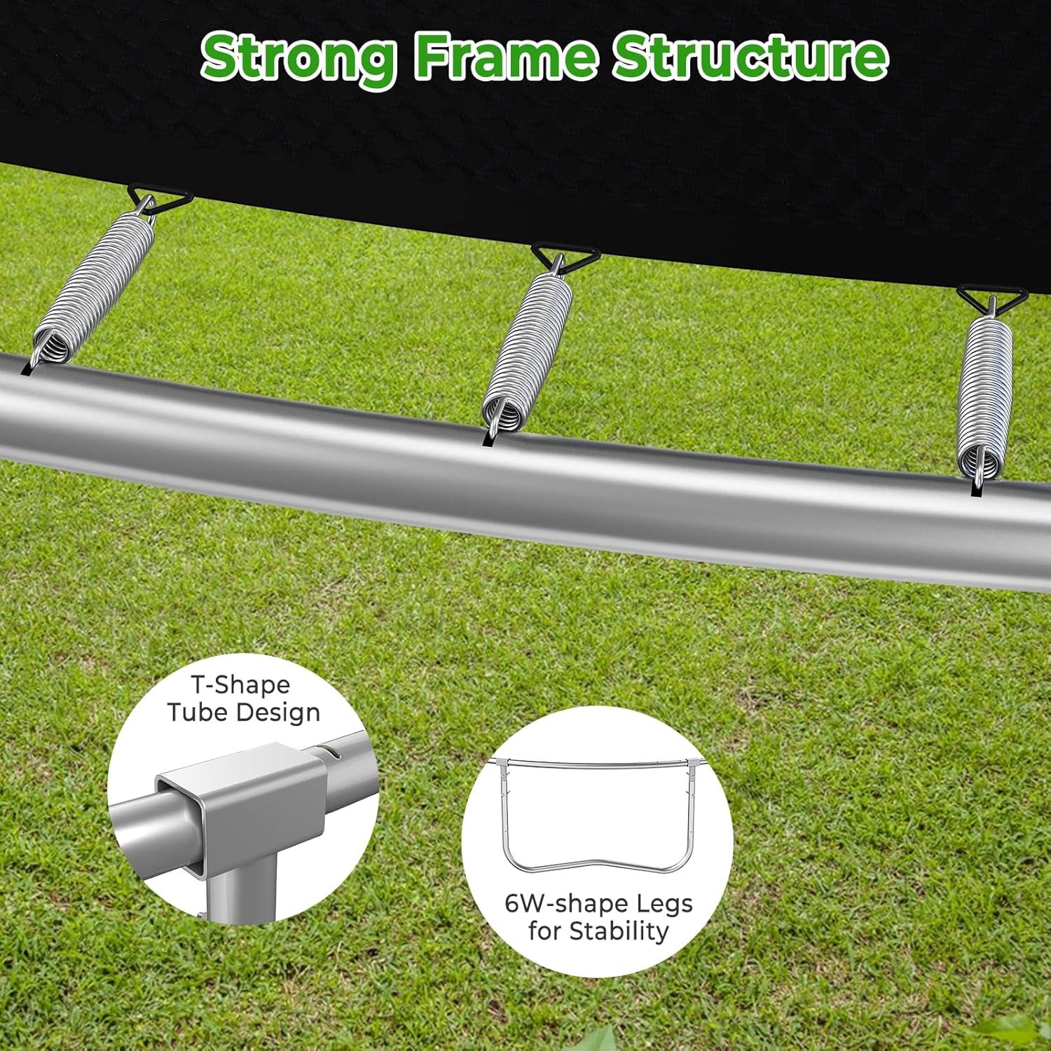 【Reinforced Steel Frame】The frame of our 12FT kids trampoline with slide consists of heavy-duty galvanized steel, rust-resistant springs and thickened 6 W-shaped legs, increasing frame stability and preventing structural twisting
