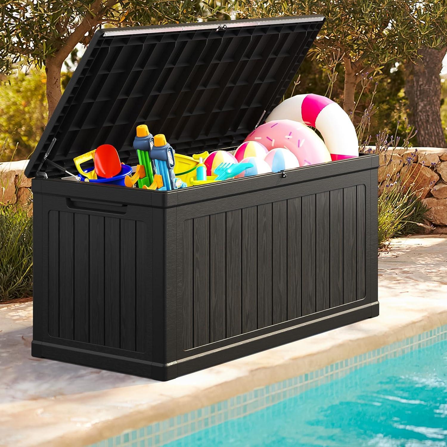 Transform your patio into a clutter-free oasis with the 230 gallon Outdoor Storage Box, where every pool toy and seasonal decoration claims its perfect spot.