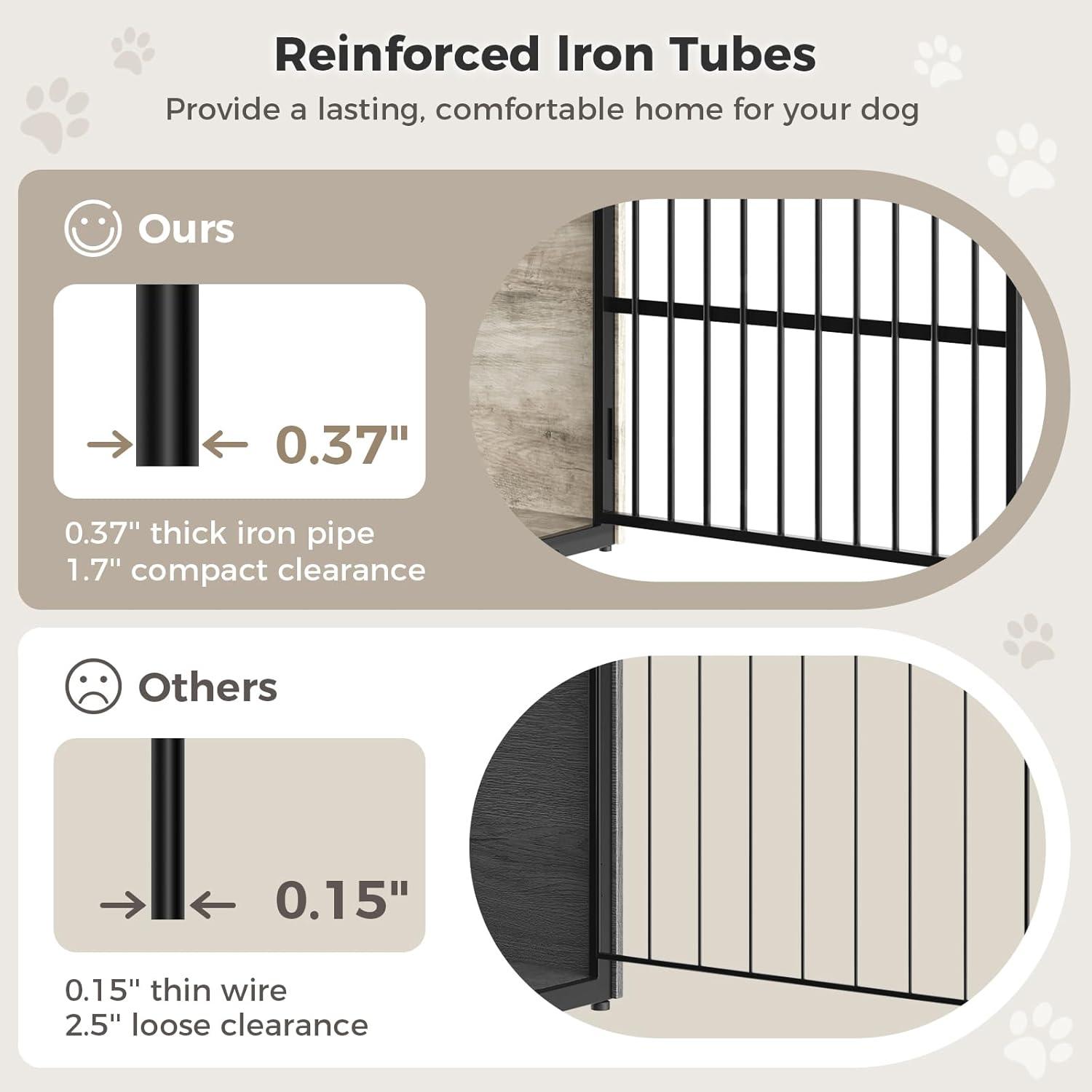 【Sturdy and Chew-Resistant】This 48'' dog crate furniture is made of premium particle board and iron pipe, which is stronger and more chewy; It will accompany your dog throughout the growing stages; It's an ideal gift for your dog