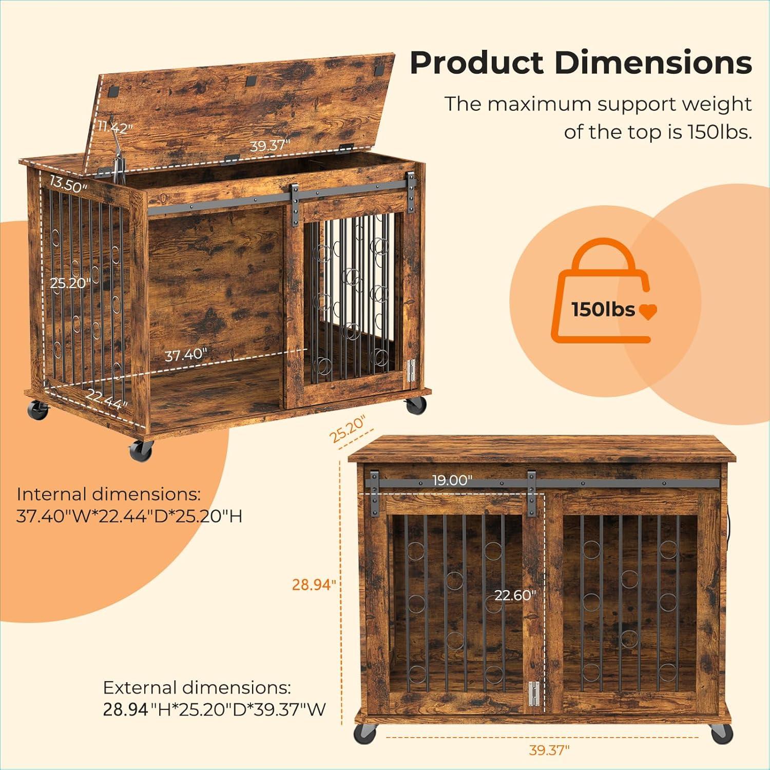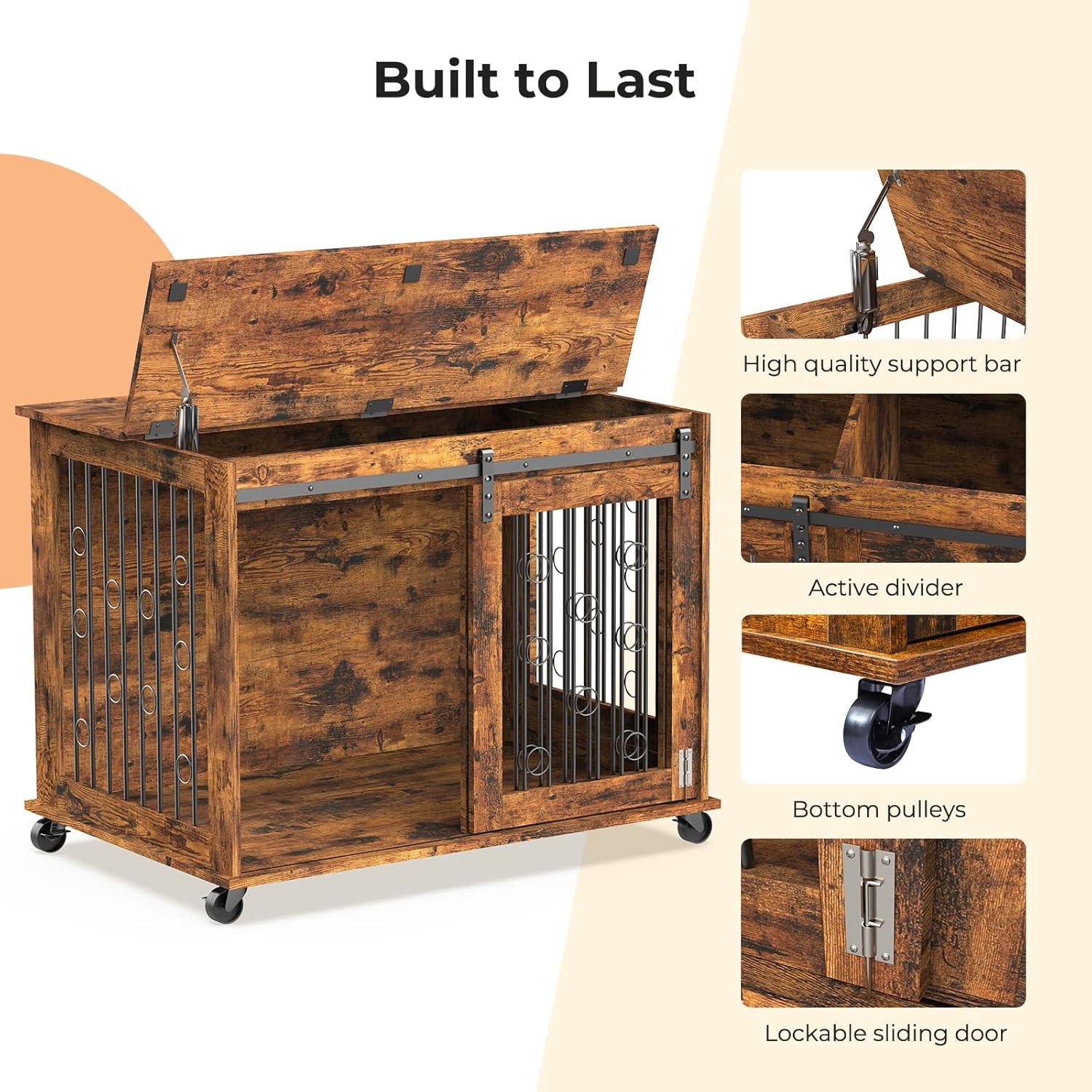【Sturdy and Chew-Resistant】Lyromix wooden dog crates are made with premium particleboard and iron, 0.3 inch thick iron pipe with rings, which make it sturdier and more chew-resistant, this will accompany your dog through its entire growth stage with you