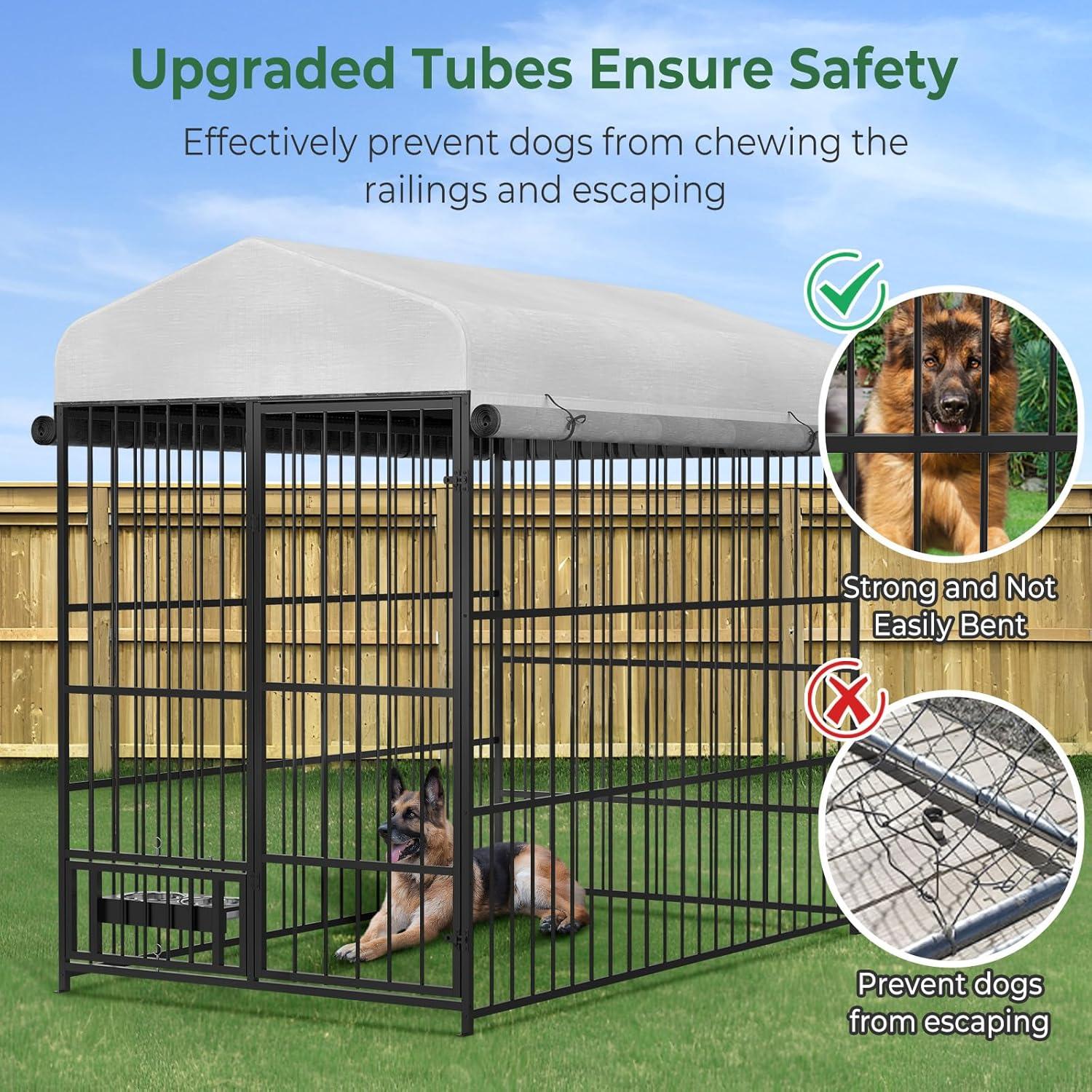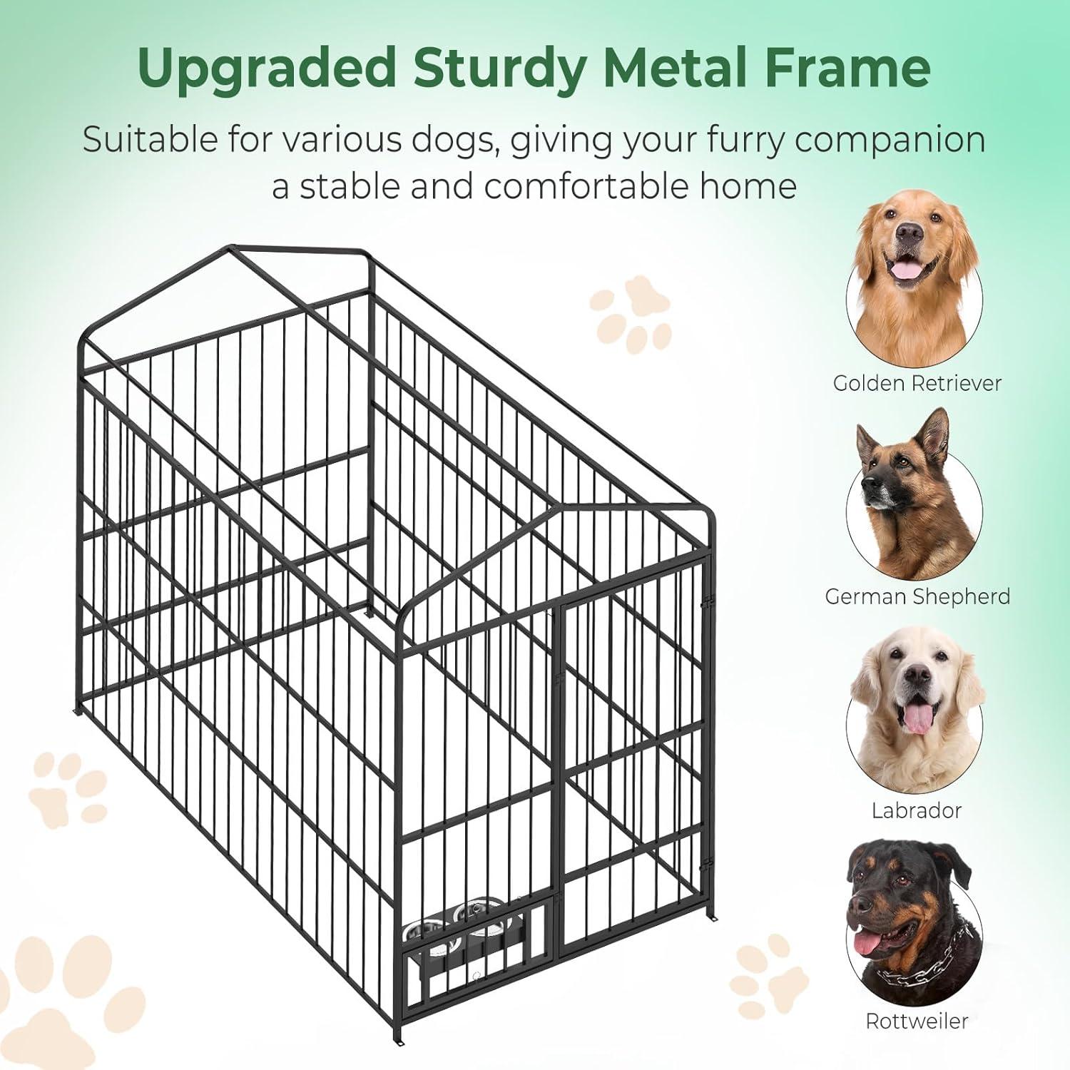 STURDY STRUCTURE: This heavy-duty outdoor dog kennel has a strong iron pipe frame with advanced paint technology for durability; 9.5mm round tubes resist deformation, peeling, and odors, offering a safe and sturdy home for your dog