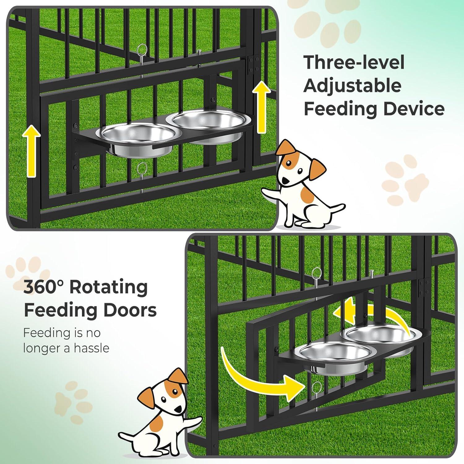 UPGRADED ROTATING DOG FEEDING DOOR: Lyromix outdoor dog kennel features a 360° rotatable feeding device with two bowl racks and stainless steel bowls; move the latch to position bowls inside or outside; feed dogs safely without opening the kennel door