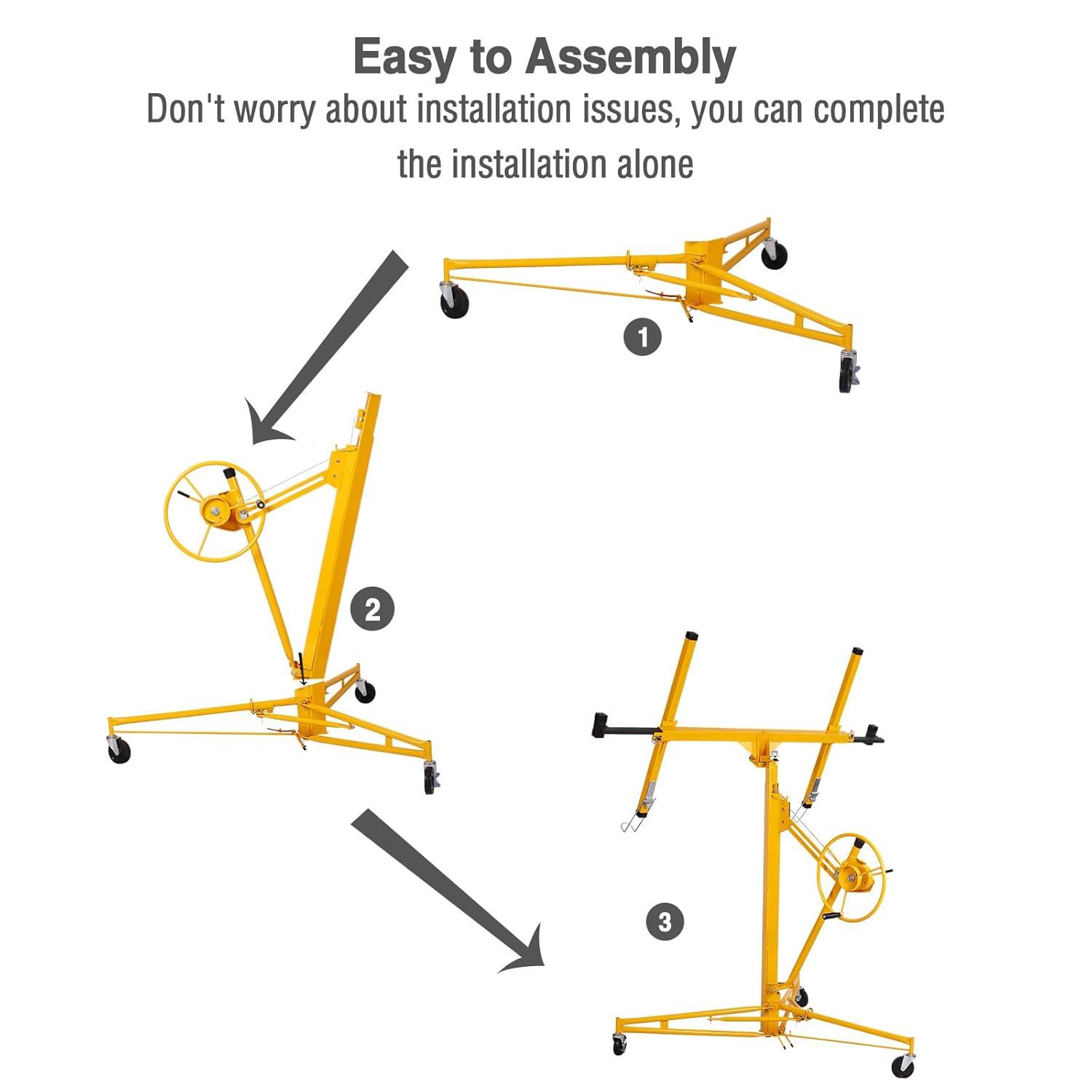 Easy to Assemble & Disassemble: The drywall lift 11ft is tool-free and allows for quick, solo assembly and disassembly