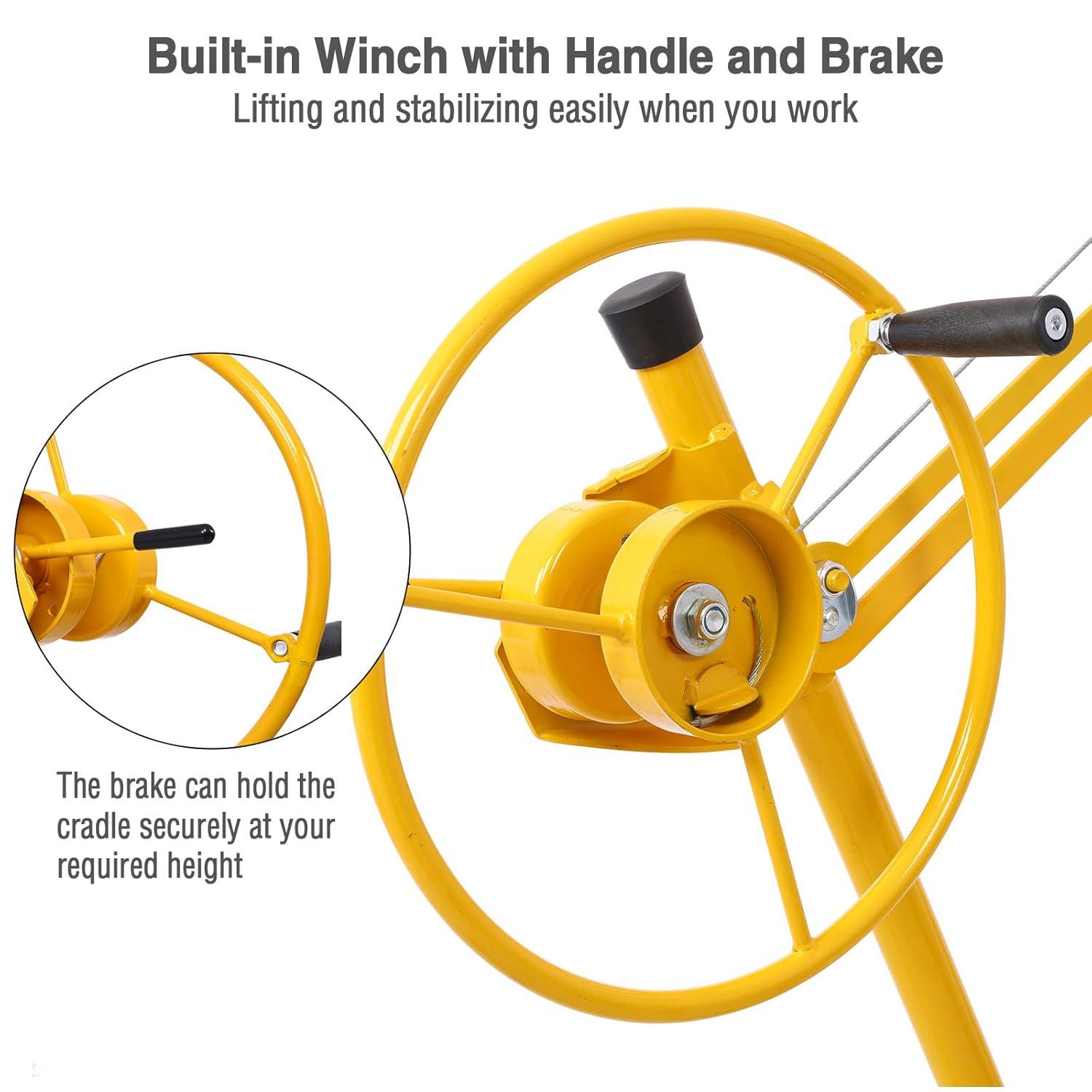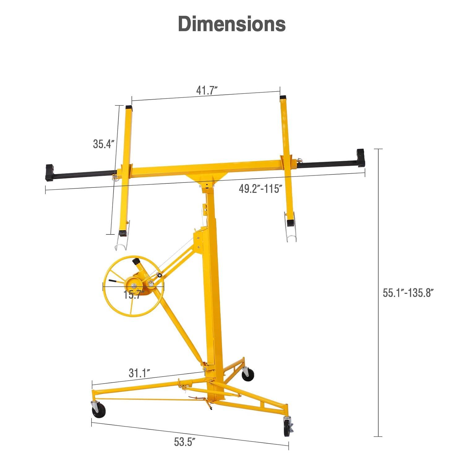 Sturdy and Safe to Use: Our 11ft drywall lifter meets CE standards and features a built-in winch and brake system for efficient installation, the 4″ caster wheels lock to ensure safety and stability, streamlining your work while keeping you secure