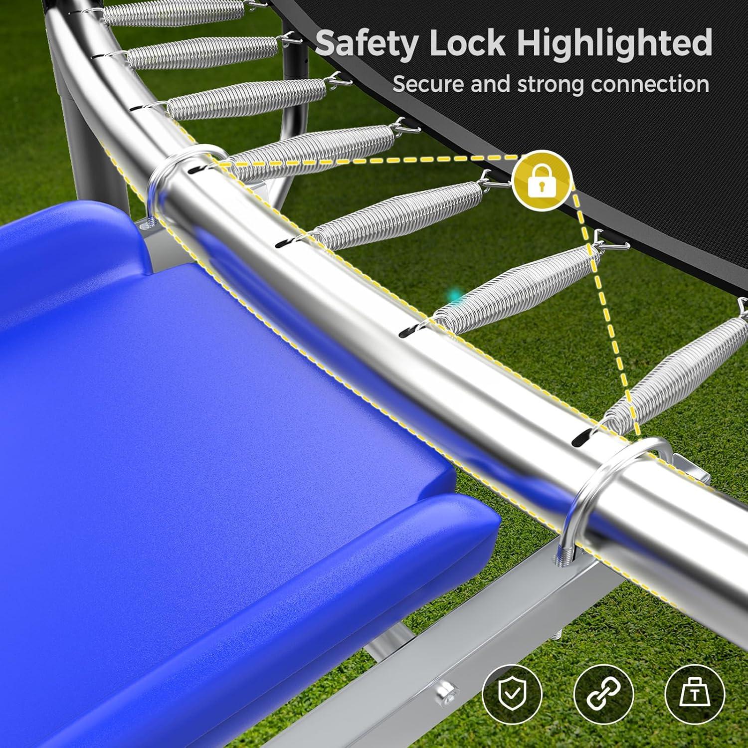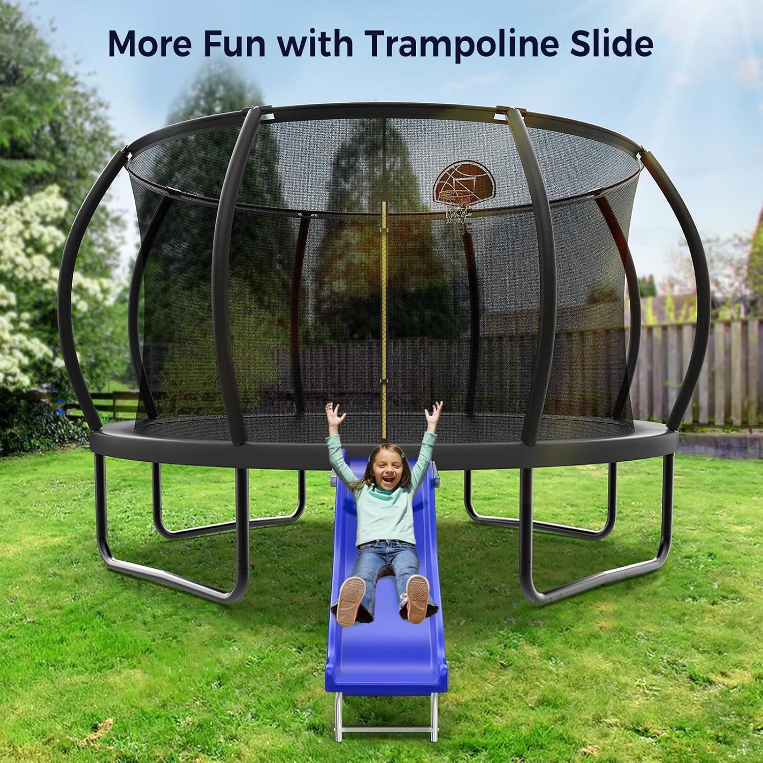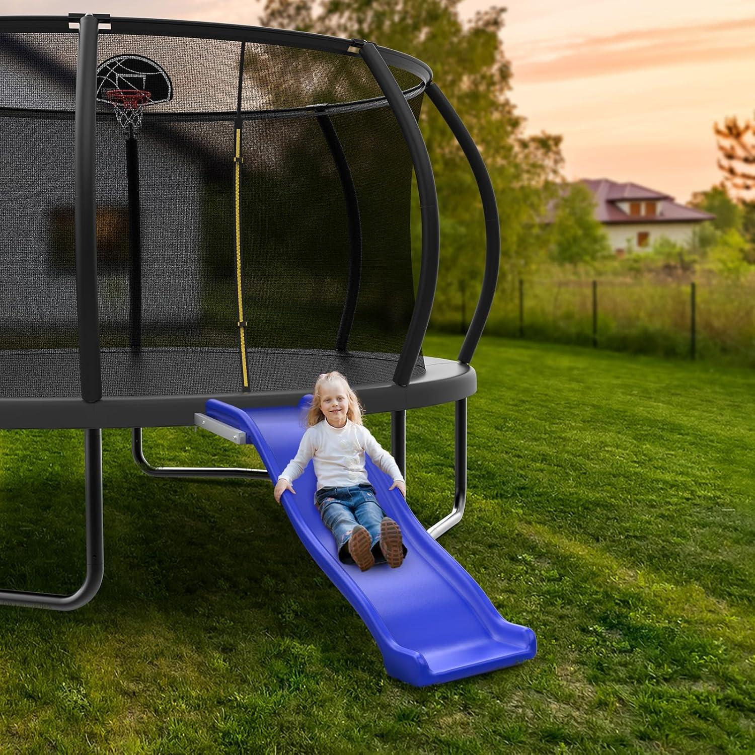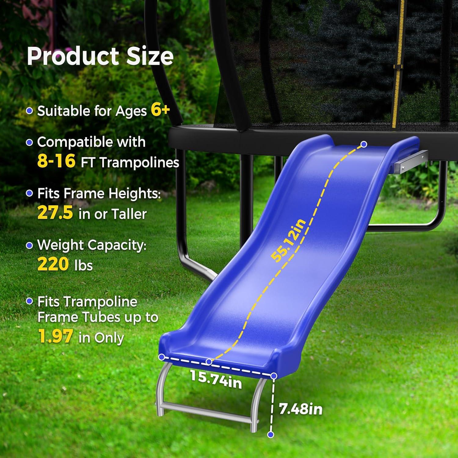 Wide Compatibility & Capacity: This trampoline slide attachment fits 8–16FT trampolines; supports up to 220.46 lbs; suitable for kids and teens; reinforced base keeps it stable during active group play