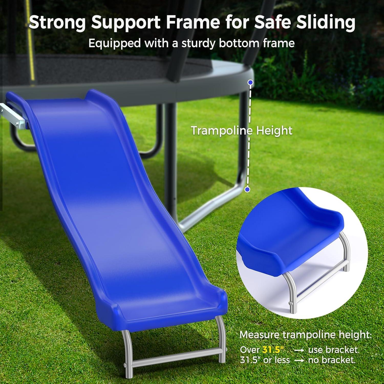 Upgraded Safety Design: This plastic trampoline slide features a bottom support frame to prevent steep angles from high trampoline surfaces; offers kids a safer more comfortable sliding experience with an outdoor trampoline slide for better play