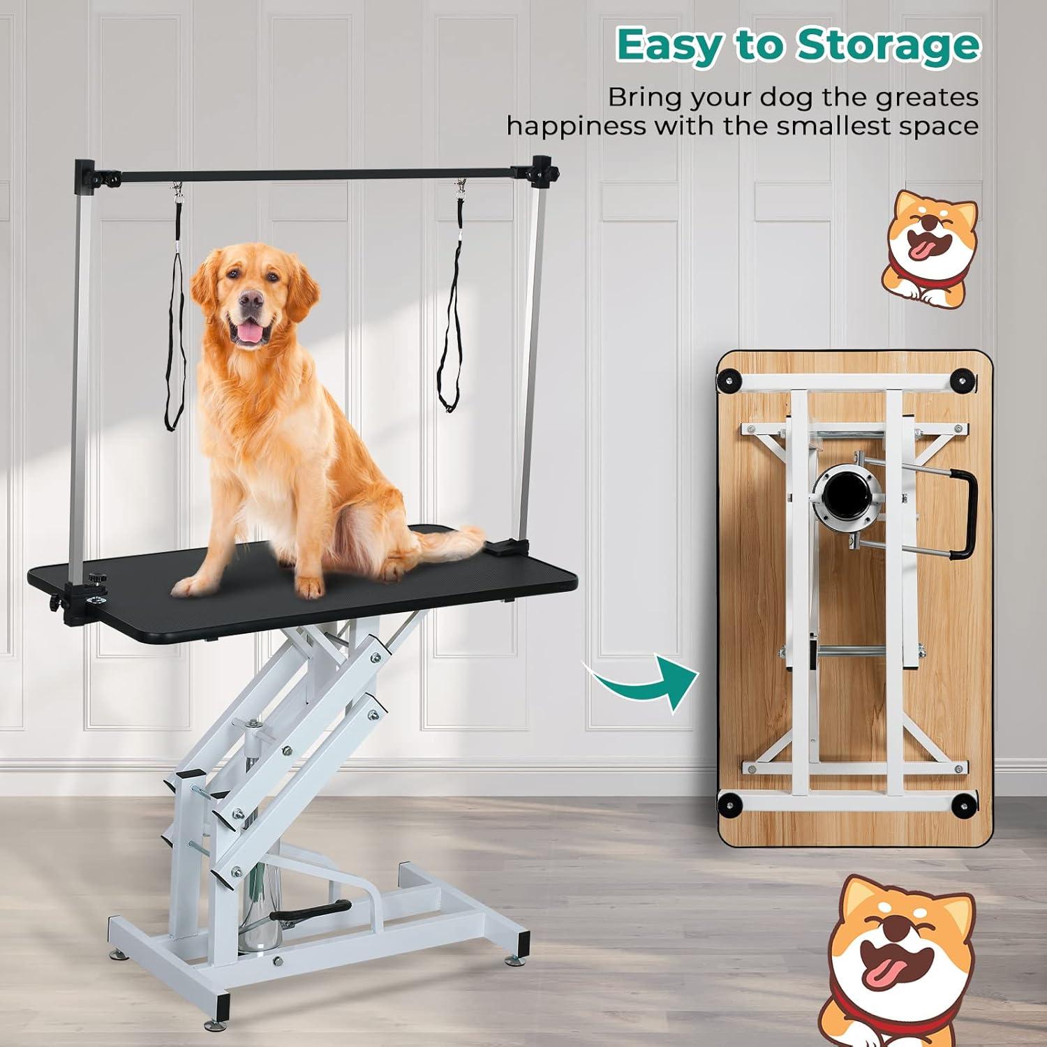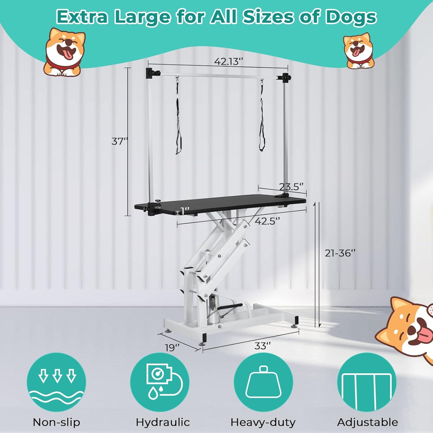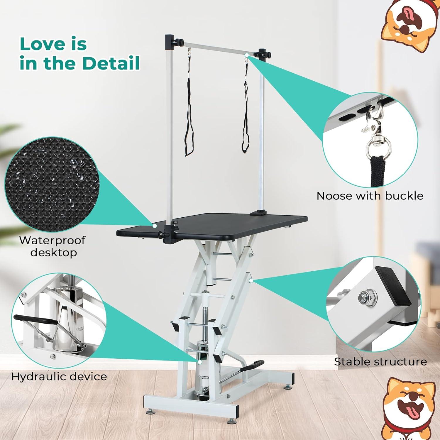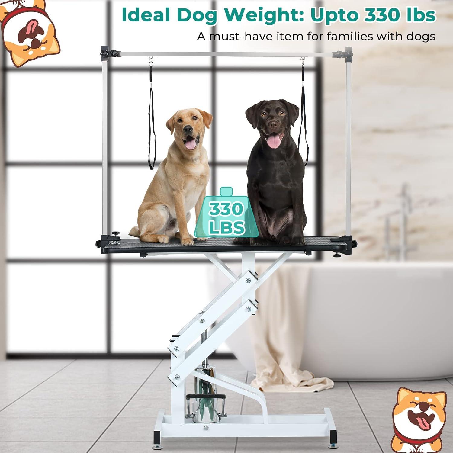 Lyromix Hydraulic Dog Grooming Table for Small/Large Dogs, Heavy Duty Professional Pet Station with Adjustable Arm and Nooses, Maximum Capacity Up to 330Lb, 43in