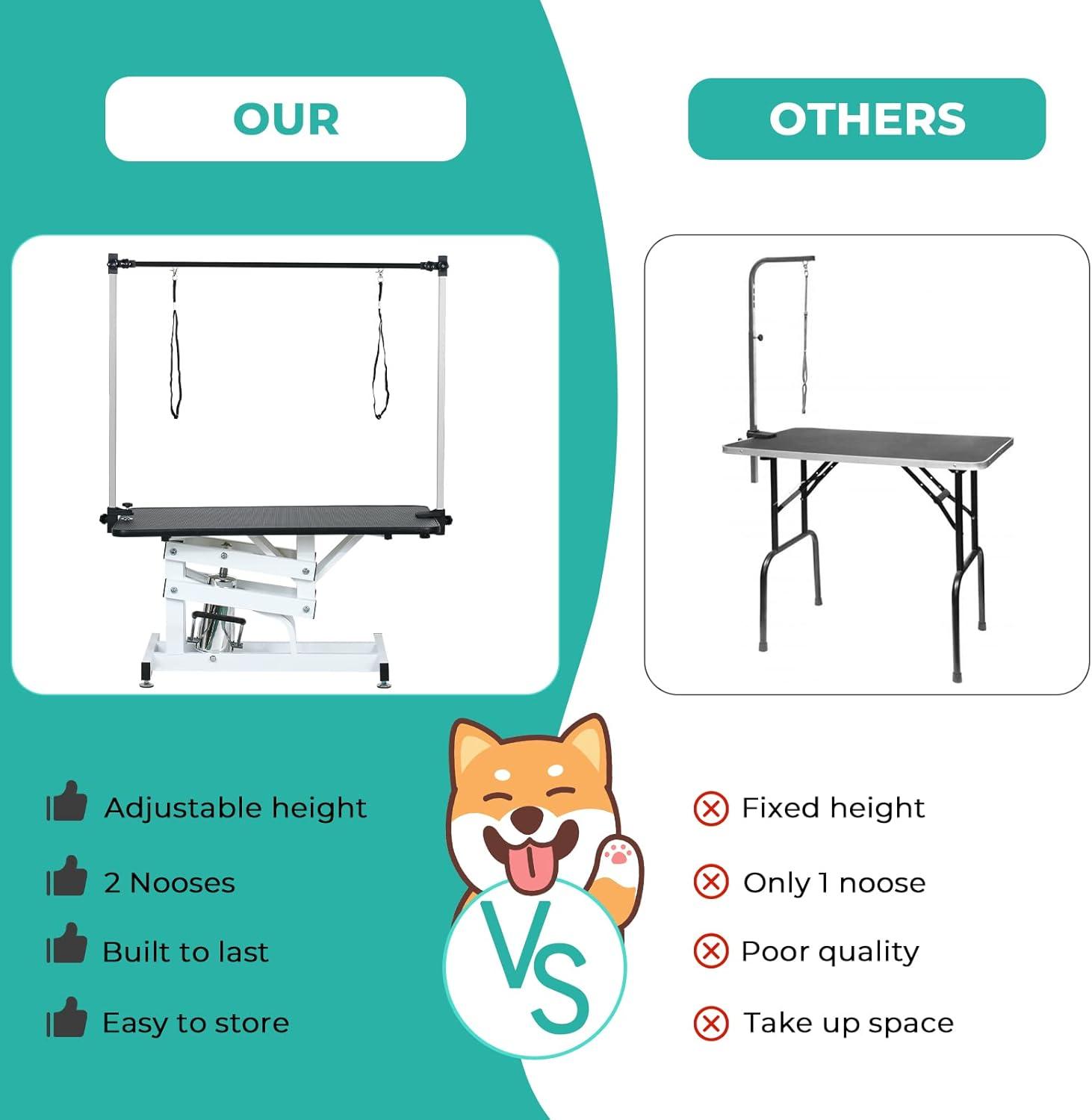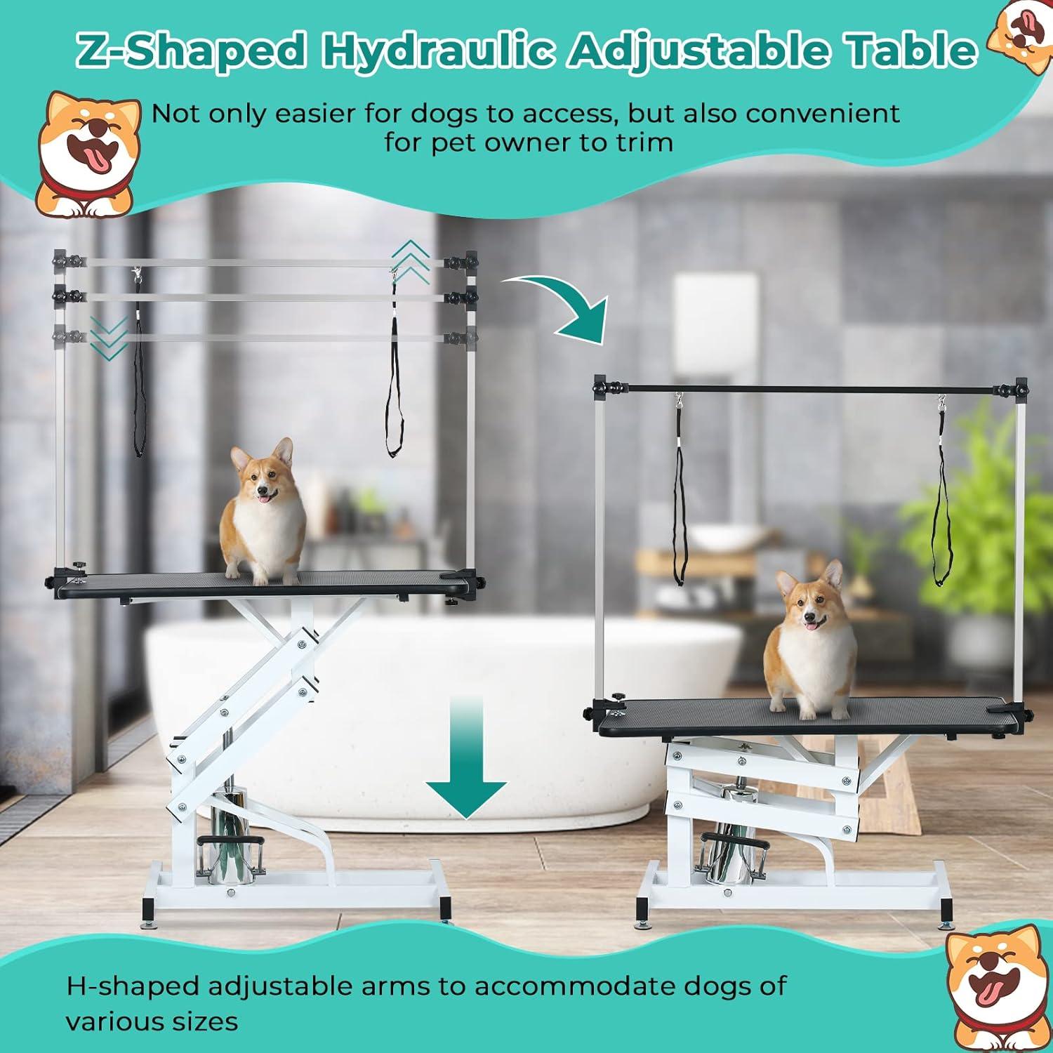 【Z-shaped Hydraulic System】With a Z-lift base, the hydraulic dog grooming table is easily adjusted to the appropriate height for the owner. Great value for the amount paid as a trim tool