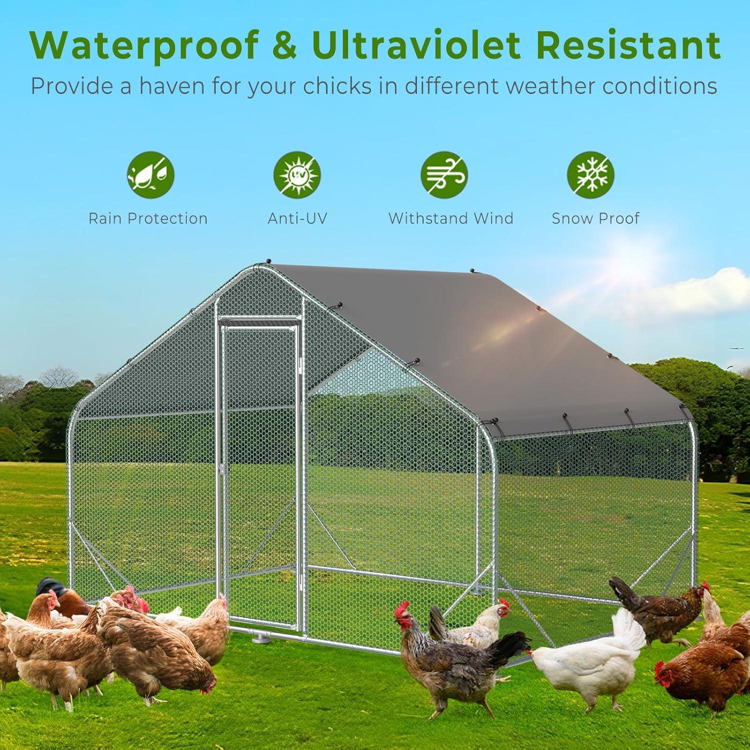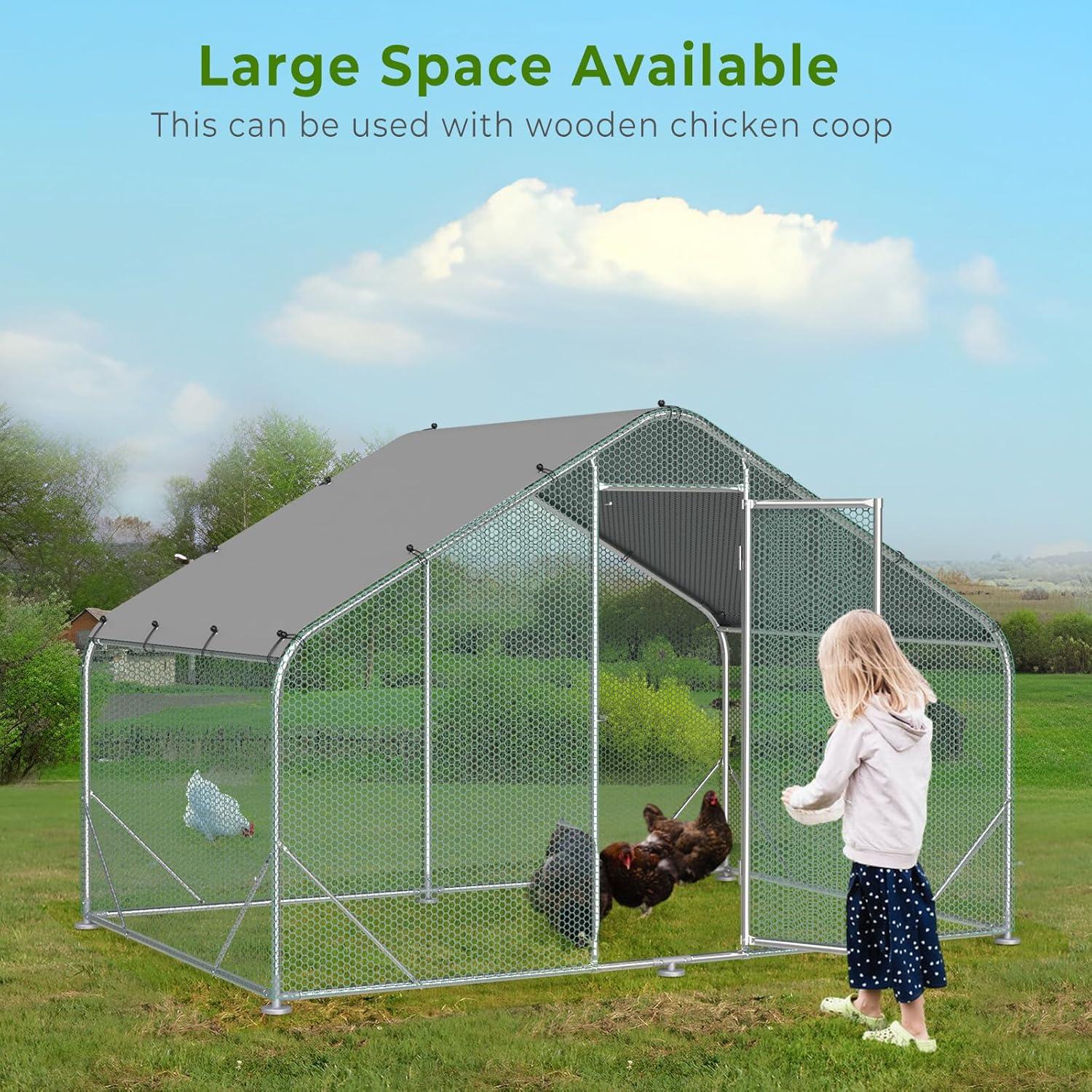 Lyromix Large Metal Chicken Coop Run, Walk-in Poultry Cage Chicken Runs House for Yard with Waterproof Cover, Ducks Rabbits Habitat Cage Spire Shaped Coop (10’L x 6.6’W x 6.56’H), Silver(9.7’L x 6.2’W x 6.4’H)