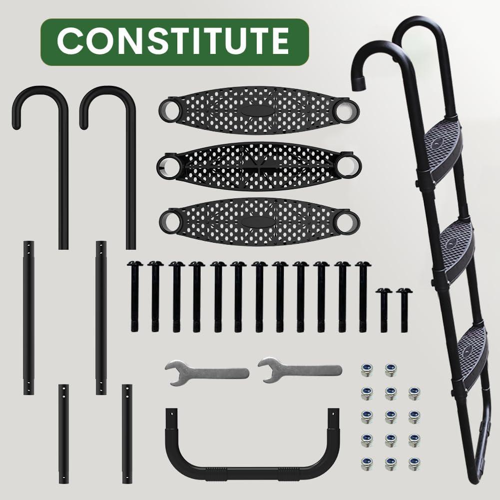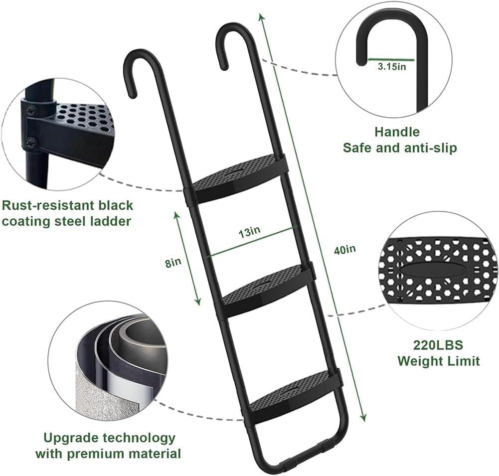 Upgrade your trampoline entertainment with this accessory bundle. It includes a trampoline sprinkler to keep you cool on hot days, vibrant LED lights to brighten night jumps, heavy-duty stakes to secure the trampoline, and a 3-step ladder for safe access. The Lyromix accessories kit features an easy-to-install misting system to reduce temperatures while jumping. Its 50FT solar-powered LED lights offer 8 lighting modes to make the trampoline mesmerizing after dark. The included stakes firmly fix the trampoline frame to the ground, while the complimentary straps provide extra stability. The Eurmax ladder has wide, non-slip steps to give safe and stable heel-to-toe access for kids. Its weather-resistant plastic and steel construction supports up to 220 lbs, ensuring durability. A bonus UV-resistant storage bag is also included to neatly store accessories when not in use. Together, these thoughtfully designed accessories aim to enhance safety, convenience, and fun. The cooling sprinkler and glowing lights expand playtime from day to night. The secure stakes and kid-friendly ladder prioritize stability and access. With hassle-free installation, the bundle makes upgrading backyard play a breeze.