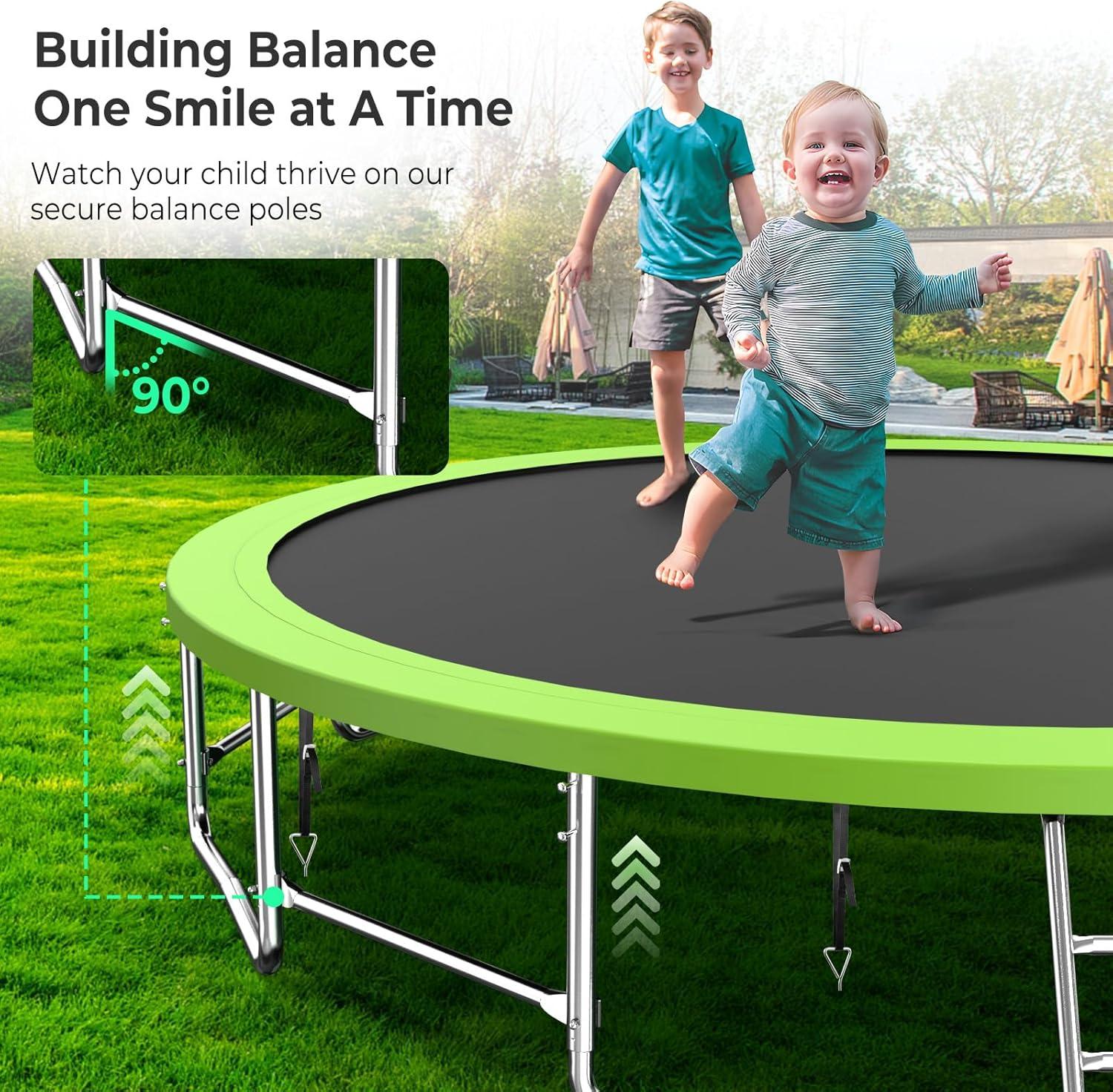 【Super Bouncy Upgraded 12FT Trampoline】Super bouncy and much more superior weight capacity. Reinforced trampoline jumping mat uses heavy-duty stitching technology to provide longer service life and better bounce, passed American UV standard 5000hours test