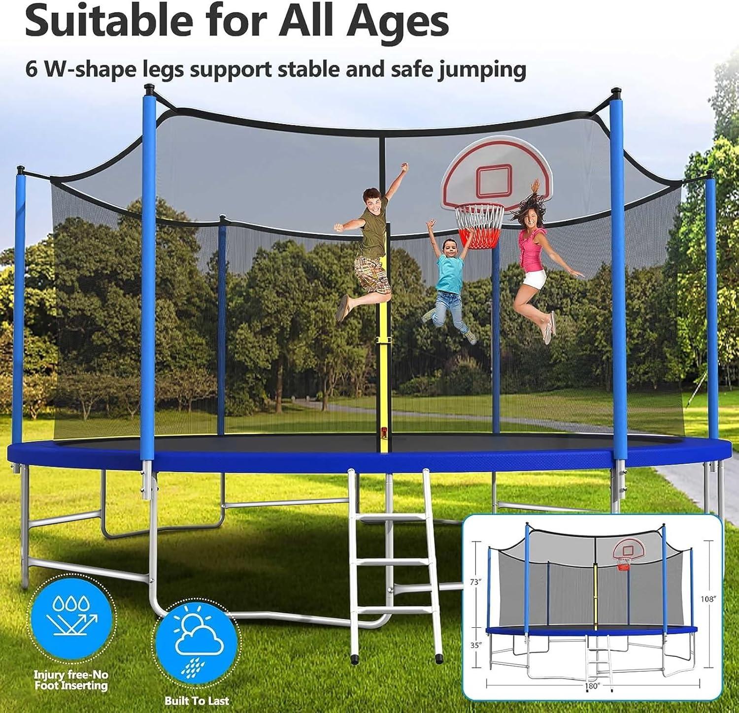 Lyromix Upgraded 16FT 15FT 14FT 12FT 10FT 8FT Trampoline Outdoor with Basketball Hoop and Net, Capacity for 4-6 Kids and Adults(Navy Blue)